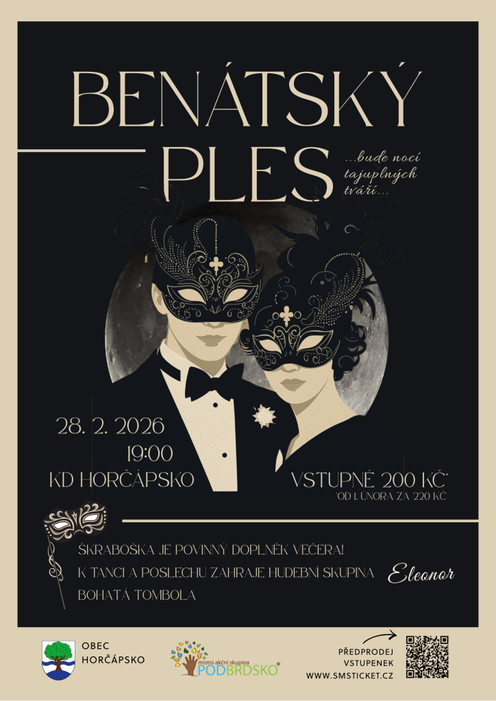 Srdečně vás zveme na nezapomenutelný Benátský ples, který se uskuteční v sobotu 28. února 2026 v prostorách KD Horčápsko. Přijďte si užít večer plný elegance, tance a tajemné atmosféry inspirované benátským karnevalem.