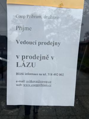 COOP Příbram hledá vedoucí prodejny do Lázu.