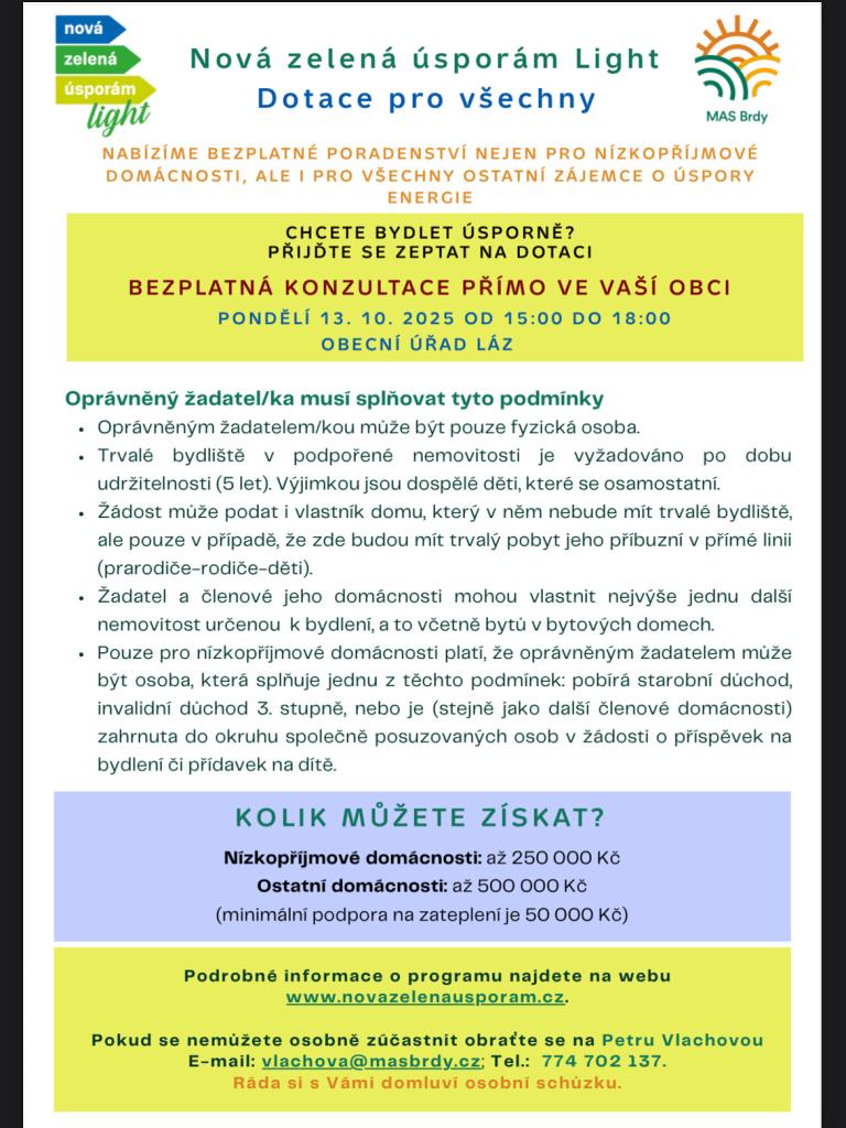 V pondělí 13. 10. 2025 od 15:00 do 18:00 hodin proběhnou na obecním úřadě konzultační hodiny energetického koordinátora Místní akční skupiny Brdy.