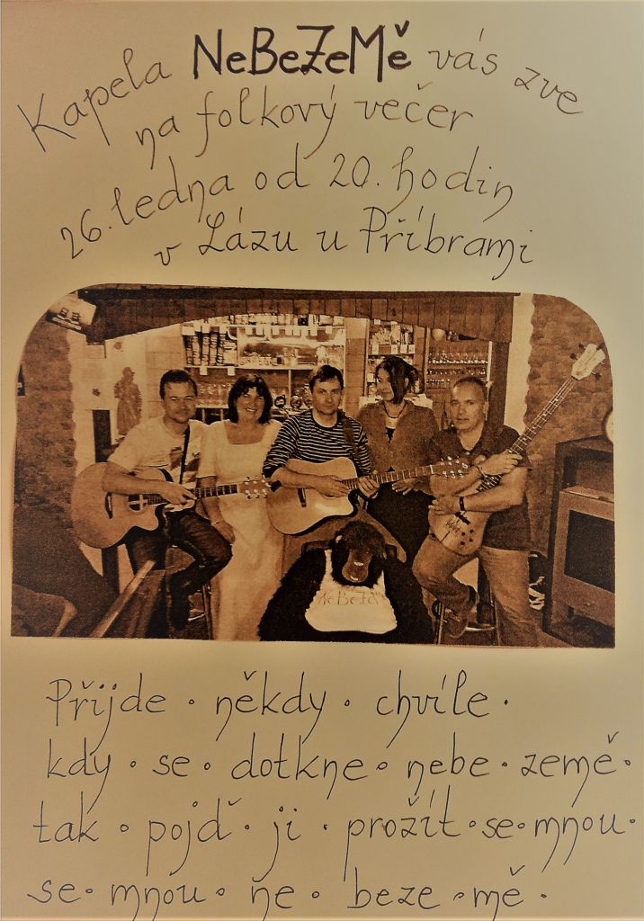 Srdečně Vás zveme na folkový večer kapely NeBeZeMě v Pohostinství U Dubu 26. ledna 2018 od 20 hodin.